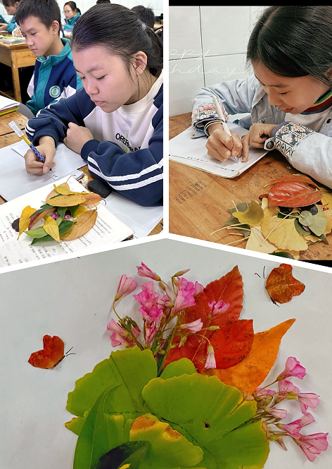 通过感知叶子四季的变化,感知生命的存在和生命的美好,领悟生命的意义。观察与寻找树叶,可以轻嗅植物的芬芳,以平复内心的波折;抚摸树的叶脉,感受另一种生机。----生命教育树叶拼贴画