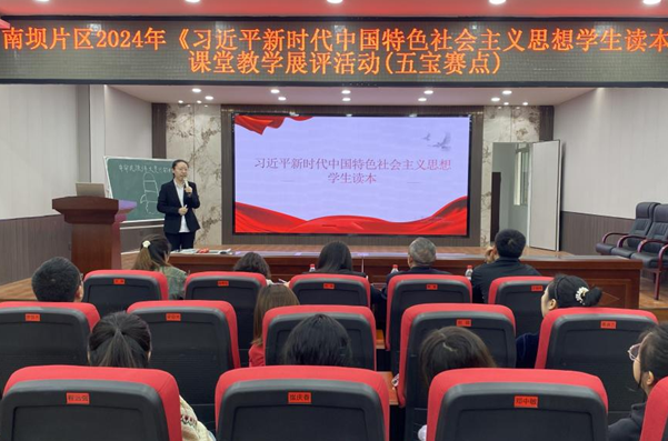人间最美四月天,春花烂漫展新颜。为持续推进习近平新时代中国特色社会主义思想进教材、进课堂、进学生头脑,增强学习的系统性、实效性,提高《习近平新时代中国特色社会主义思想学生读本》的教学水平,发挥落实立德树人根本任务关键课程作用。4月16日,南坝片区2024年《习近平新时代中国特色社会主义思想学生读本》课堂教学展评(初中组)活动在宣汉县五宝镇学校举行。