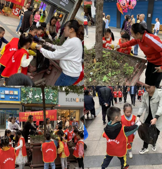 户外实践活动中,孩子们在老师的带领下,对幼儿园周边的环境进行了清理。他们拿着小铲子、提着垃圾袋等工具,认真地清理着地面的垃圾和花台里的烟头。他们的眼中闪烁着兴奋和自豪的光芒。