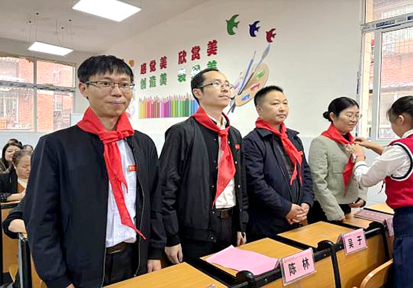 活动伊始,少先队员们怀着崇敬之情为领导敬献红领巾,那一抹鲜艳的红色,传递着少先队员们的敬意与担当。紧接着,出大队旗,队旗飘扬,庄重的仪式感油然而生。学校分管德育工作的副校长陈林登台讲话,言辞中满是对少先队员的鼓励与期望,为本次竞选活动注入了强大的动力。