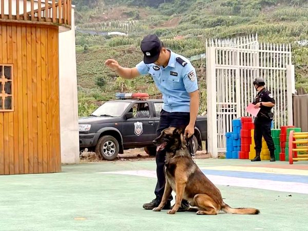 训练有素的警犬严格按照教官的指令,准确地做着站起来、坐下和卧倒等动作,警犬有敏锐的观察力和快捷的执行力,还能非常准确无误的找出藏在盒子里的危险物。
