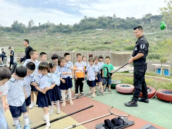 最后,园长陈娟就本次活动做出总结:对广安市特巡警支队的到来表示衷心感谢!特警同志们展现出恢弘气势,在孩子们幼小的心灵中播种下了勇敢、坚毅的种子,并呼吁全体师幼认真学习反恐防暴知识,增强安全意识,共筑平安校园。