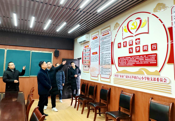 2025年1月8日下午,广安市广安区委教育工委书记、广安区教育科技和体育局刘志军局长一行莅临广安区石笋镇白云小学检查指导工作。此次检查旨在了解学校党建工作、教育教学质量、校园餐、校园管理及安全保障等方面的实际状况,为推动学校高质量发展给予指导。