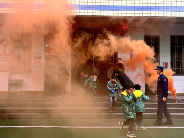 演练时,随着警报声在校园内骤然响起,消防安全应急疏散演练正式拉开帷幕。只见教学楼内瞬间弥漫起模拟火灾烟雾,各班学生在老师的指挥下,迅速用毛巾、衣袖等捂住口鼻,弯腰俯身,按照预定的疏散路线快速、有序地撤离教室。同学们神情严肃,动作敏捷,充分展现了平日里学校安全教育的成果。