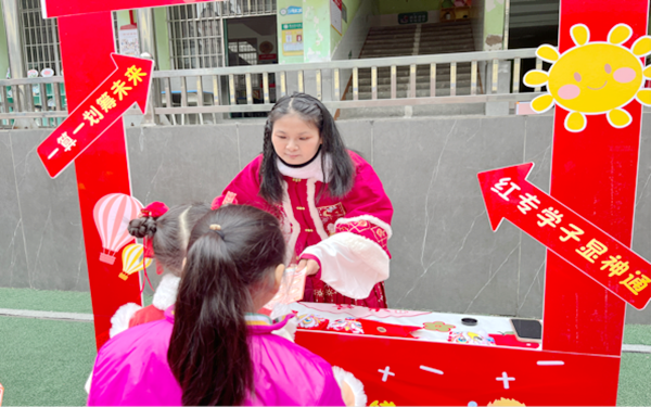 在五彩糖葫芦”关卡,孩子们亲自动手,串山楂、裹糖浆,体验传统美食制作的乐趣,既锻炼了动手实践能力,又感受到中华传统文化的魅力。“背诵小能手”关卡里,孩子们声情并茂地背诵着一首首经典诗词、一篇篇优美课文,展现出扎实的语言积累功底。“口算小天才”面前,一道道算术题被孩子们快速攻克,敏捷的思维和过硬的计算能力展露无遗。“图形辨辨辨”区域,面对各种形状的图形,孩子们迅速且准确地说出其名称和颜色,敏锐的观察力令人称赞。“天籁音乐屋”中,孩子们一展歌喉,用清脆悦耳的歌声诠释着对音乐的热爱与理解。“体能小健将”环节,跳绳、拍球等项目让孩子们尽情释放活力,他们矫健的身姿彰显出蓬勃的朝气。
