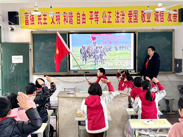 各中队结合班级情况,开展了形式多样、丰富多彩的主题队课活动。如二年级中队邀请老党员讲述红军长征在四川的感人故事,引导队员们学习红军不怕牺牲、勇往直前的革命精神,坚定理想信念,走好新时代的长征路。