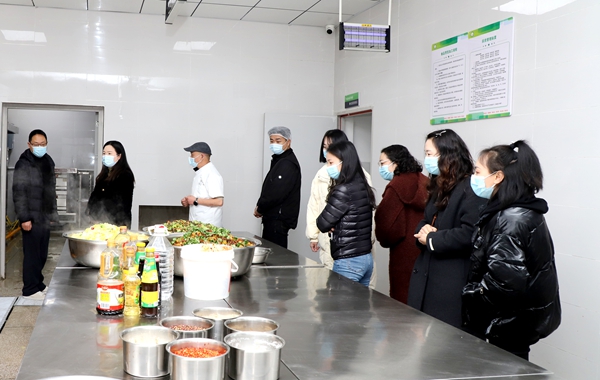 观摩指导,走进食光。在分管后勤副校长的带领下,家长代表、学生代表和教师代表走进学校新建食堂,直观地了解食堂规范管理等工作,参观食堂各功能区分布和操作流程,实地查看食材仓库、食品留样、备餐过程、餐具消毒等情况。食堂工作人员向学生和家长代表现场展示了食材查验和入库储存,食材清洗、切配、备餐、烹饪各环节,井然有序的操作、全流程透明化和严谨规范的管理赢得了学生和家长代表的高度肯定和赞扬。