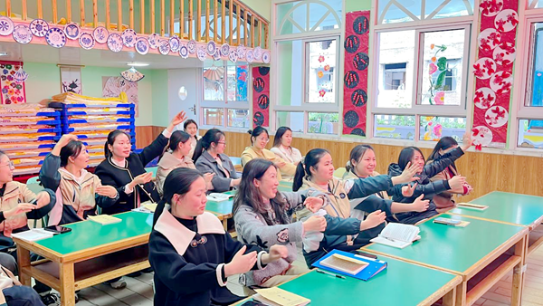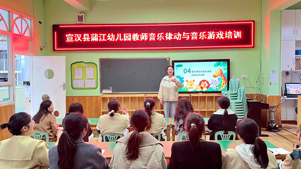 为深入贯彻《3—6岁儿童学习与发展指南》精神,进一步提升幼儿园教师的音乐教学能力,激发幼儿对音乐的兴趣,宣汉县蒲江幼儿园于2025年4月1日下午组织全体教师参加了音乐律动和音乐游戏的专题培训。