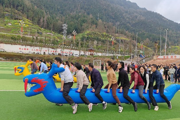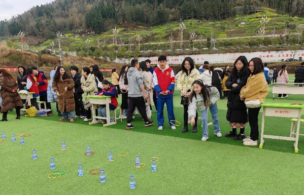 趣味运动会设集体项目和个人项目。集体项目包括鼓动人心、同舟共济、锣鸣盛世。个人项目设置沙包投准、夹乒乓球、吹乒乓球过水杯、套圈游戏。