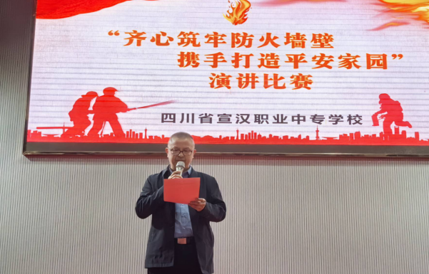 宣汉职专党委委员、副校长符立出席并讲话,肯定各专业部在初赛、复赛阶段取得的成绩,阐明了重要节点举办决赛的重大意义,希望参赛选手和全校师生以此次比赛为契机,认真学习消防安全知识,掌握火灾自救能力,共同营造安全、和谐的学习生活环境。