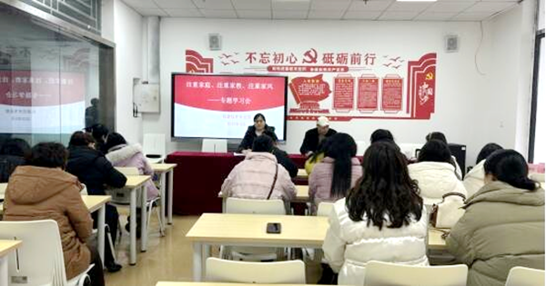 在专题学习环节,机建技术党支部书记王敏带领参会教师重温习近平总书记“三个注重”重要讲话精神,强调女教师在家庭教育和学校教育中的双重使命。他表示,专业部将持续深化家风建设系列活动,通过“课程思政+家庭教育”双轨模式,成就新时代德技双馨人才。据悉,该专业部已建立女教师成长档案,年内计划开展家风故事分享会等6项特色活动。