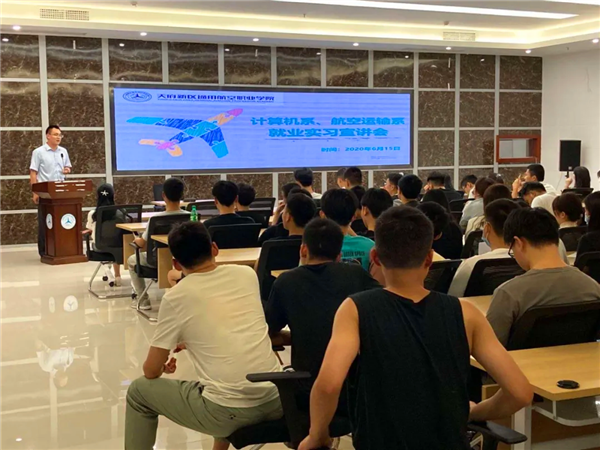 四川佰腾晨信人力资源公司总经理钟翔就当前就业形势及航空公司就业情况进行了精细化分析。他指出,在当前新冠疫情持续影响下,就业岗位正在急剧减少,同学们如何抓住就业机会,为个人走出大学校园,取得满意岗位,显得十分重要。同时,他利用其公司资源为同学们提供了机场客桥操作、机场VIP引导、机场交通调度、机场安检等就业实习岗位,帮助同学们获得宝贵实习机会。