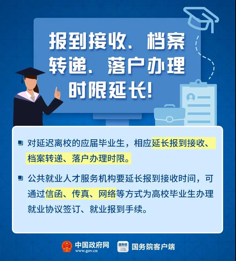 所有毕业生:报到接收、档案转递、落户办理时限延长