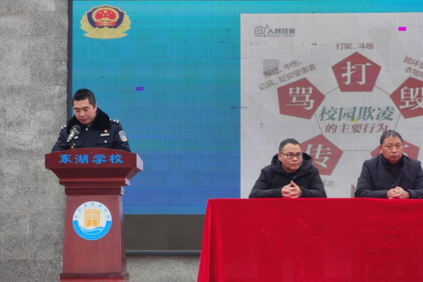 紧接着讲了校园欺凌应该承担的法律责任,通过案例分析引发大家的思考,校园欺凌并不仅仅只是存在校园暴力的一种形式,我们应该先学会良好的沟通,不恶语相向、不造谣诽谤、不小肚鸡肠,要不断提高自身的修养与品德,然后要提升自我保护的能力,遇事沉着冷静,确实遇到不能自己解决的问题要及时寻求家长和老师的帮助,也可拨打报警电话请求警察的帮助。