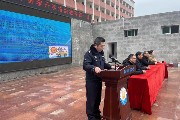 2024年2月26日,岳池县东湖学校召开春季开学典礼,邀请岳池县城东派出所副所长张玉林同志做法治教育,张所长就无证驾驶与醉酒驾驶的法律规定,面向全体师生讲解了无证驾驶的定义和处罚,以及醉酒驾驶的典型处罚案例,以警示所有的人应该严格遵守道路交通安全法律法规。