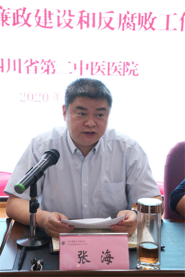 四川省第二中医医院党委副书记兼纪委书记黄湄,四川省第二中医医院主持医院行政工作的副院长谢刚先后传达了四川省纪委监委驻四川省卫生健康委员会纪检监察组组长张峰,四川省卫生健康委员会党组书记沈骥在全省卫生健康系统党风廉政建设会议上的讲话精神。