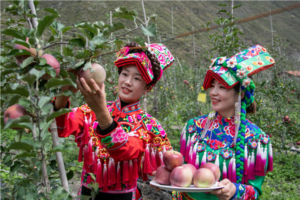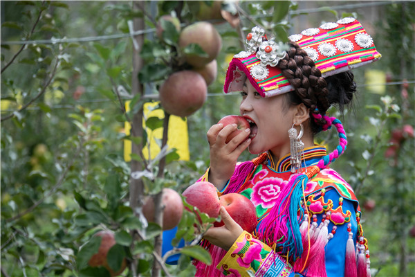 9月23日,第三届茂县李文旅节赤不苏古羌传统采摘仪式在该镇赤不苏村举行。这几天,王成龙一边忙着举办活动,一边组织村民对去年和前年种下的新品种苹果树进行“修枝疏果”,以确保两三年后这片果树林的产量实现大丰收。