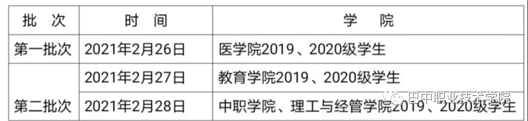 2021年3月2日:2018、2019级学生返校;2021年3月3日:2020级学生返校,3月4日正式行课!