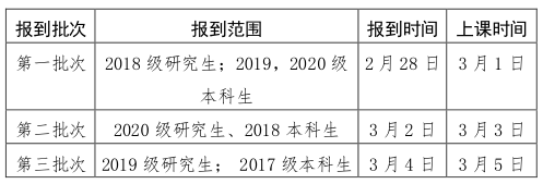 3月4-6日安排学生分期分批、错时错峰返校报到。3月8日正式行课。