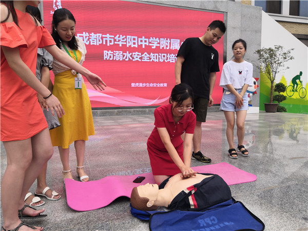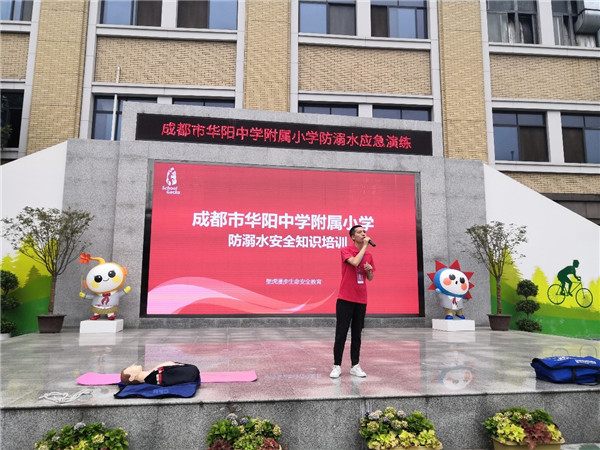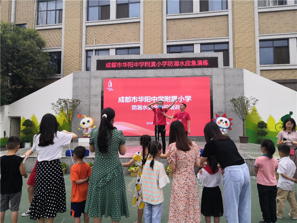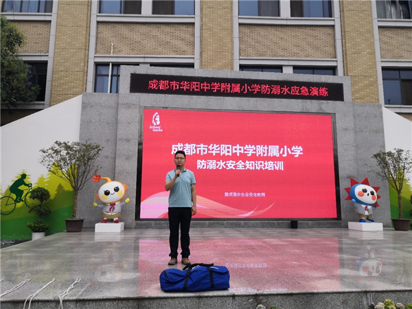为了全面提高学生的防溺水安全意识,认真落实“安全第一,预防为主”的方针,紧紧围绕“预防溺水,珍爱生命”的主题,杜绝溺水事故的发生,确保学生的生命安全,成都华阳中学附属小学(以下简称:华中附小)委托壁虎漫步生命安全教育专业团队,帮助学校策划了本次的防溺水演练方案,并在校方领导的积极带领和组织下,于2020年6月28日上午开展了防溺水应急演练。