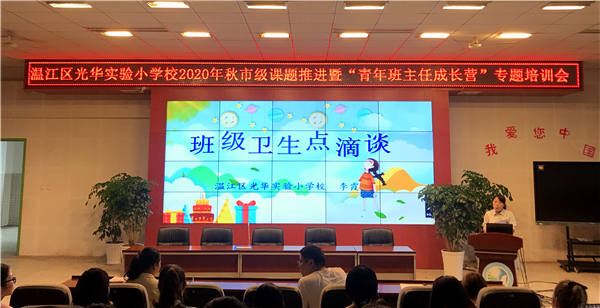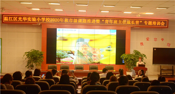 为加强学校新班主任队伍建设,帮助他们尽快熟悉班主任工作,提高班主任工作能力,全面提升班级管理的实效性。2020年8月23日,温江区光华实验小学校(以下简称:光华实小)2020年新班主任培训工作会在至美报告厅顺利召开,会议由德育处喻华主任主持。