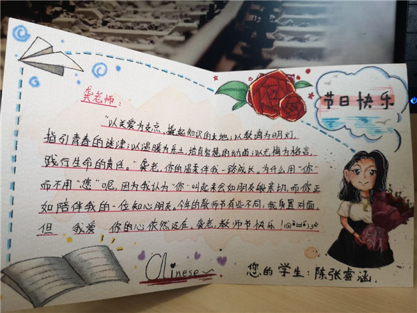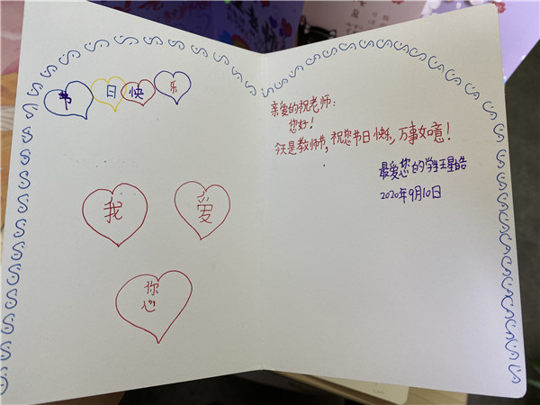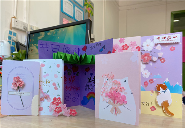 走入办公室,一支支鲜红的康乃馨静静等候着老师们的到来,一张张书写着孩子们真实心声的卡片表达着对老师的祝福与祈愿。没有过多的装饰,没有华丽的语言,却有着质朴的情怀,深沉的敬意。老师们都被这份祝福感动,惊喜不已。