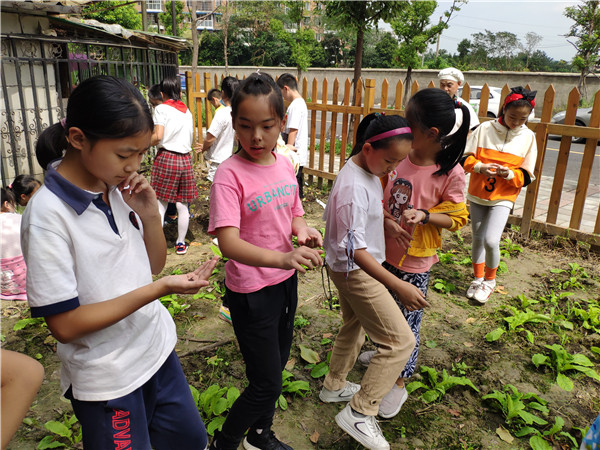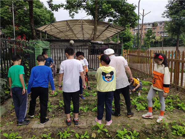 在本次活动中,周小松老师指导孩子们认识牛劲草和水花生这两种杂草,教会了他们拔除杂草的方法。