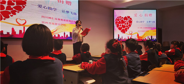 2020年10月20日,“爱心助学 让梦飞扬”爱心电脑捐赠仪式在崇州市辰居小学举行。四川树仁乐智教育咨询公司向辰小捐赠150台总价值四十五万元的电脑。崇州市教育局保障中心主任甘国良、保障中心张作伟、四川树仁乐智教育咨询公司何梦欣女士、辰居小学校长助理牟红梅等出席会议。会议由行政办主任王国庆主持。