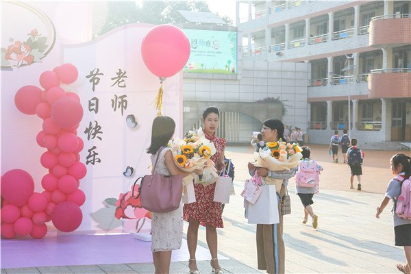金色九月,秋风送爽,迎来了第36个教师节。为了让教师们过一个有温度、有仪式感的教师节,9月10日上午,成都市青白江区大弯小学全体行政在曙光穿过树枝间隙时,就已等候在校园,将学校精心准备的礼物送到陆续到来的老师们手中,并送上了节日的祝福。