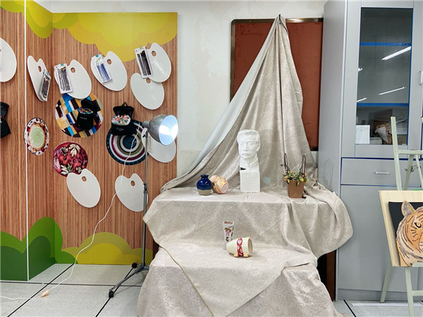 美术是美丽的魔术,她能把每个孩子心中的画卷描绘出来,让大家看到童心的纯洁与美好。二楼平台的艺术展台是孩子们最喜欢的地方,那里有画展、有欣赏,最重要的是还有大家对美的追求和向往。