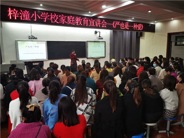 11月11日,崇州市梓潼小学校一至六年级各班的10名家长代表在二楼学术厅参加了家庭教育宣讲会。