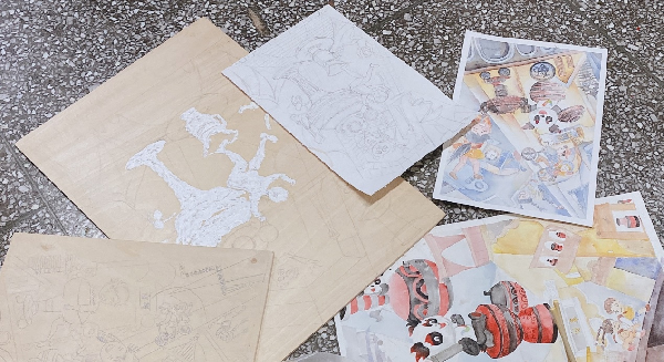 此次艺术节的绘画和工作坊项目,美术组以“漆(器)”开得“胜(西)”为主题,紧密围绕学校的“漆器特色”课程来开展相关创作。不仅借此机会向全校师生宣传普及了成都漆器文化、弘扬传统文化,同时也让全校师生共同参与、体验并享受在艺术创作过程中的快乐。