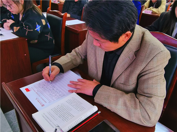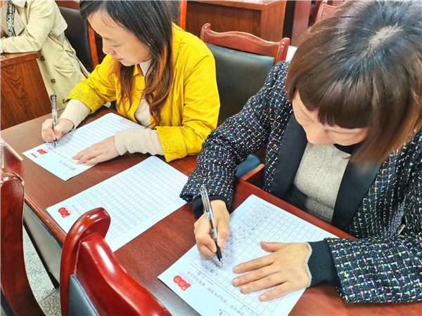 随后,全体党员教师一起参加了“书写百年光辉”教职工硬笔书法比赛,用手中的笔书写祖国日新月异的变化,抒发建设富强民主文化和谐美丽的社会主义现代化国家的豪情壮志。