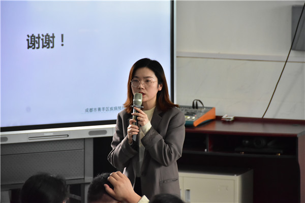 青羊区疾控中心专家和成都市第一骨科医院医生现场讲解了疫情防控指南和除颤仪应急救治的使用。