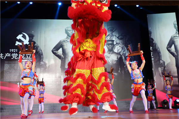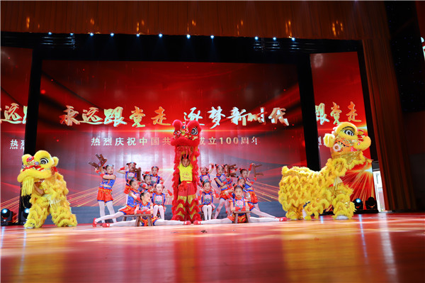 传统文化技艺《童趣·追光》。通过舞蹈和舞狮表现了人们对美好生活的追求。