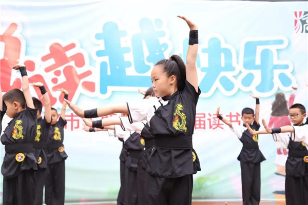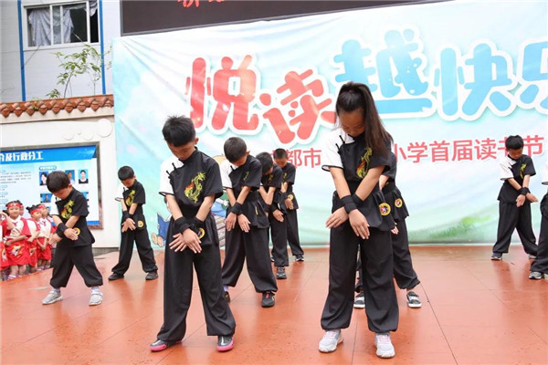 “卧似一张弓,站似一棵松,不动不摇坐如钟,走如一阵风……”《中国功夫》武术操表演中,小小“武术家”们身着黑白相间的武术服,个个精神抖擞。伴随着轻快的音乐节奏,他们出拳踢腿,干脆利落;马步弓步、扎实稳健。从动作到眼神,一招一式充分展现出了中华武术的精、气、神。