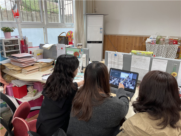 成都市新华路小学以提升课堂教学效能作为落实“双减”政策的切入口之一,并积极申报了区级课题。本着“研用并重”的原则,学校以学科组为单位将课题研究工作常态化,让教师们立足于学科教学实际开展研究。3月24日下午,该校郭红霞老师和白珊珊老师分别呈现出语文四年级下册《白鹅》的第一、二课时,通过线上直播的方式与全区四年级语文老师共同研讨。课后,贺堂英老师进行说课展示,温馨老师作主题分享。最后,刘老师和现场老师就三步学习单进行互动交流,线上观课的老师们在QQ群中反响热烈。