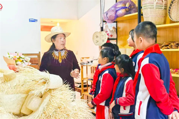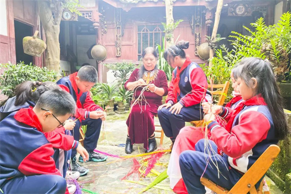 为丰富学生艺术课程,让学生近距离感受非遗棕编的魅力,2024年11月14日上午,成都市郫都区三道堰学校德育处谭老师和大队辅导员曹老师带领学生来到郫都区古城镇非遗棕编大师李天清的古城棕编场馆,亲临非遗课程教学现场,认真学习棕编艺术,弘扬和传承中华优秀传统文化。