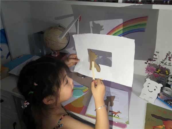 大班孩子将绘本故事改编成剧本。在家长和老师的帮助下,孩子将原创或经典绘本故事按照自己喜欢的方式进行了演绎和表达。或是手偶、或是光影、或是真人表演,展现了不一样的戏剧表现形式和效果。