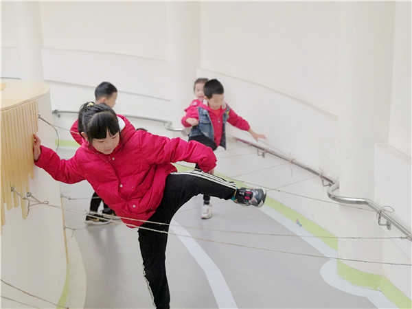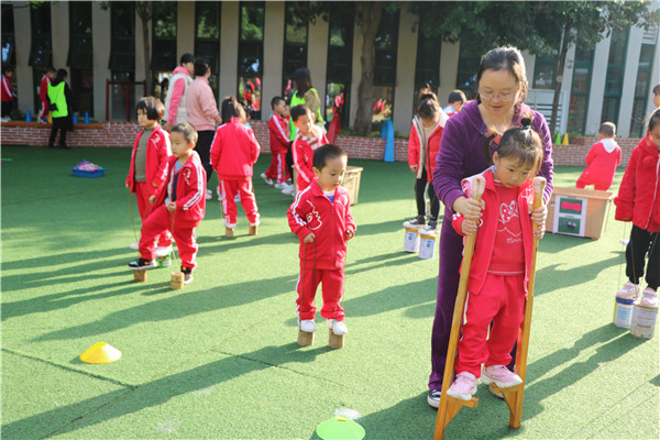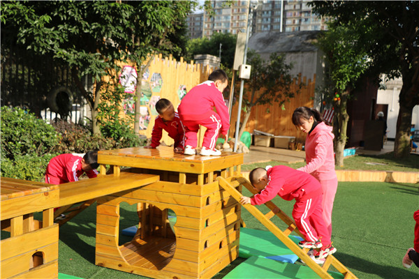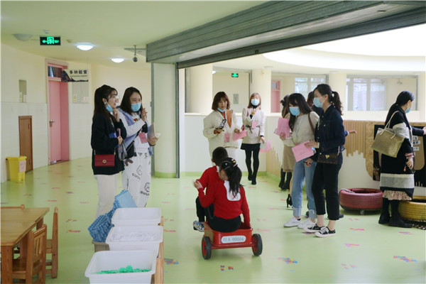 在业务园长夏梦的陪同下,老师们参观了班级、园区环境,观摩了晨间体育活动,对幼儿园富有特点的建筑和依托环境开展的室内外体育活动赞叹不已。