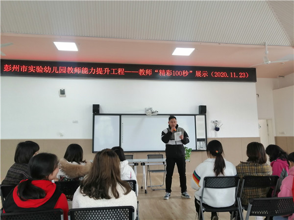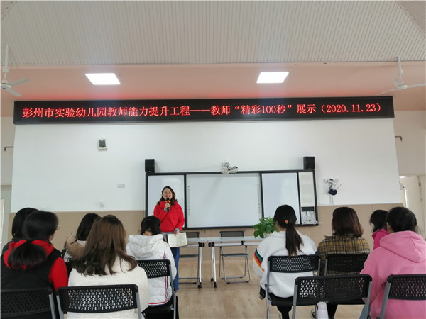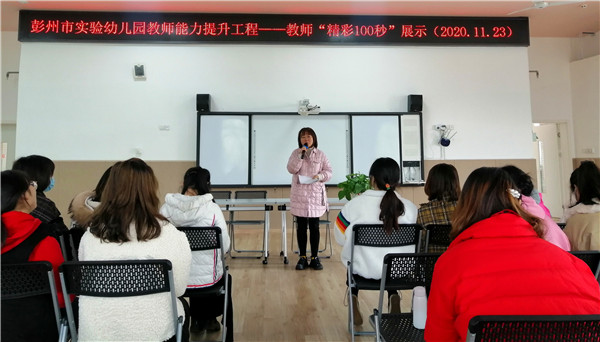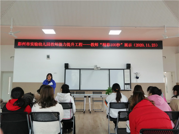 彭州市实验幼儿园(以下简称:彭州实幼)建园三月有余,每个实幼人用一点一滴的成长,编织着属于他们的教育故事。2020年11月23日,彭州市实验幼儿园总园教师及后勤人员齐聚多功能厅,开展了“彭州市实验幼儿园教师能力提升工程——精彩100秒”主题分享会。