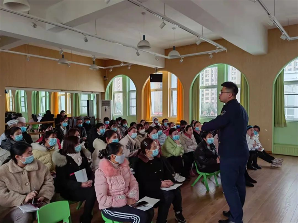 2022年2月23日中午,成都市郫都区犀浦幼儿园组织全体教职工开展了以“落实消防责任,防范安全风险”为主题的消防安全知识讲座,切实提高全体教职工的安全意识及遇到火灾时的应急处置能力。