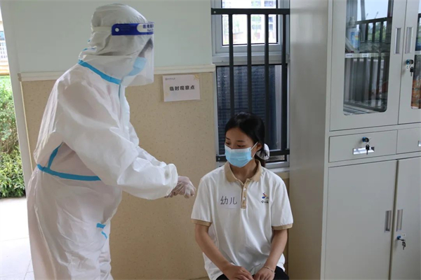 体温依旧异常,班级老师立即联系家长,询问相关行动轨迹及接触史,确认该小朋友为疑似病例。保健医生立即上报园长,园长立即启动应急预案,并将相关情况上报相关部门,并对园区进行相关管理措施。