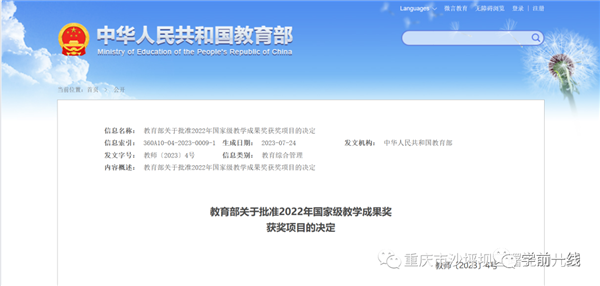 教学成果奖是我国教育领域最高学术奖,该奖项每四年评审一次,2022年是第三届。基础教育国家级教学成果奖授奖成果共570项,其中特等奖2项、一等奖70项、二等奖498项。