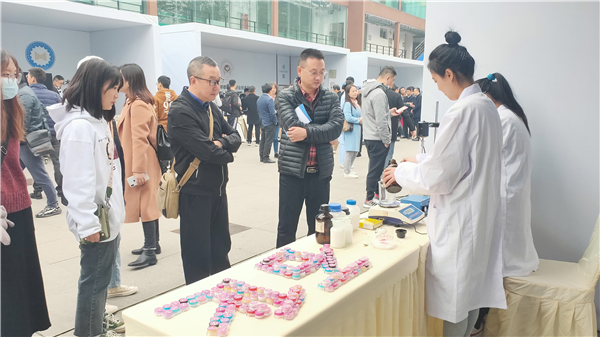 成都石化工业学校技能展示项目护手霜制作经过层层遴选入选启动仪式现场展示,是唯一中职化工类专业展示项目,该展示项目由成都石化工业学校化学工艺专业师生查阅资料,改良传统配方,运用乳化的原理制得。中共四川省教育工委委员、教育厅党组成员、副厅长张澜涛,中共成都市委教育工作委员会委员、专职副书记、成都市教育局党组成员何荣,彭州市教育局党组成员、副局长王庆福视察了展示项目,对展示项目结合学校专业特色展示彭州职教风采予以肯定;与会各地市州及中职院校代表体验技能展示项目。