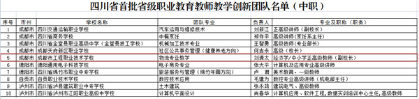 近日,四川省教育厅对于首批省级职业教育教师教学创新团队遴选结果进行了公示,成都市工程职业技术学校副校长、正高级教师刘清太领衔的物流服务与管理专业教学团队成功入选。