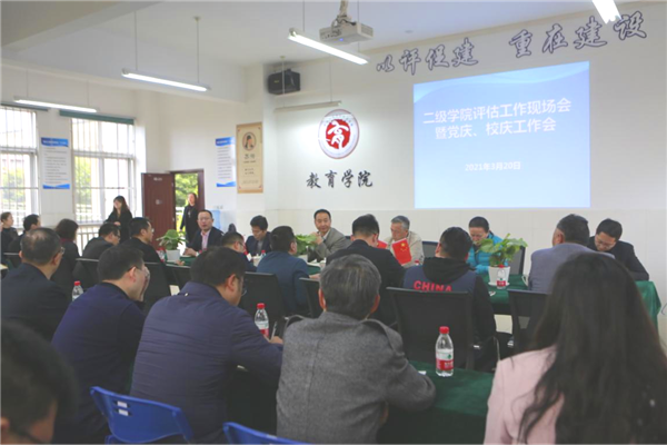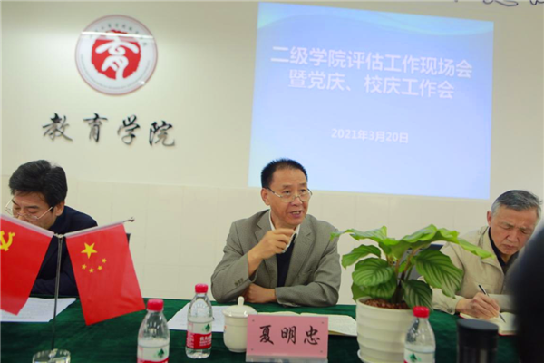 会上,夏明忠总结了前一阶段该校本科教学合格评估专项工作进展情况,梳理了现阶段需要解决的难点、重点问题。他指出,本次会议是针对二级学院“十大评建任务”召开的现场会议,经过学校评建办和教育学院的共同努力,完成了“三室一体”的会议室建设,完善了“十大任务”中支撑材料的档案,全力打造了一个主题鲜明、内容丰富、格调雅致的会议室。教育学院走在了前面,做出了示范,典型引路,值得学习。随后,夏明忠安排部署了学校下阶段各二级学院评建工作任务等,要求各单位按照评估指标内容,进一步学深、弄通、做实,并对下阶段评建任务再细化、再部署、再推动。
