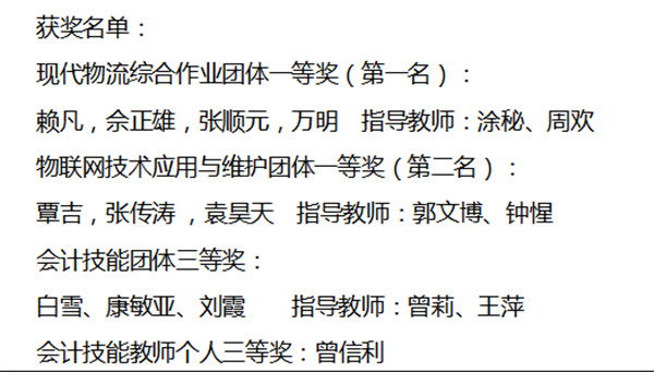 2021年四川省中等职业学校技能大赛落下帷幕,成都市工程职业技术学校(以下简称:工程职校)物流专业部共有4支队伍分别参加了物联网技术应用与维护、现代物流综合作业和会计技能在内的3个赛项的比赛,共斩获团体一等奖2个、三等奖1个,个人赛三等奖1个;其中,现代物流综合作业、物联网技术应用与维护荣获团体一等奖,现代物流综合作业项目更是以全省第一名的优异成绩取得了2021年国赛的参赛资格。会计技能赛项参赛学生和教师分获三等奖,彰显了“参赛即获奖”之霸气。
