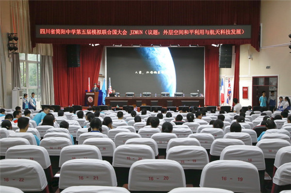 6月13日,四川省简阳中学第五届模拟联合国大会在格物楼一楼大会议室顺利召开。本次大会共有300余人参加。会议主题为“外层空间和平利用与航天科技发展”。