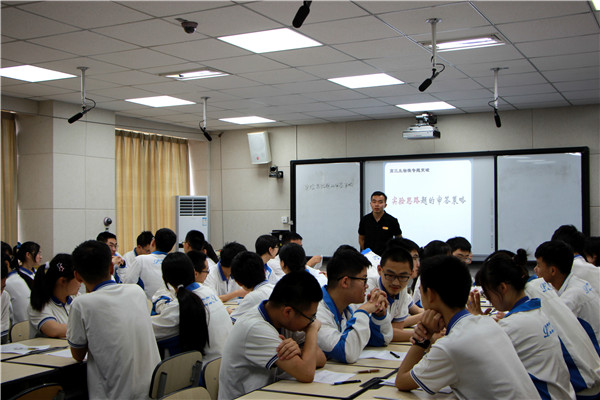 遴选出的优秀选手于2020年6月10日的第2、3、4、5、6节课和6月11日的第2、3、4、5节课在彭州中学录播教室分别进行了比赛。在课堂上,老师们或采用实验探究的方法引入对新知识的学习;或采用先让学生观看视频、阅读文字或图表等素材,之后再结合这些素材进行充分的分组讨论;或由社会热点问题引入,比如地摊经济、中美贸易战、新冠肺炎疫情、新冠肺炎疫情后复工复产等,再进行小组讨论教学;或则采用情景教学模式进行,通过“感知—理解—深化”三个教学阶段来完成教学任务。在各学科的教学中,老师们应用现代信息技术和互联网+技术作为辅助教学手段表现得尤为突出,对设备的操作和技术的应用非常娴熟。各参赛教师精彩纷呈的表现吸引了全校教师的目光,老师们纷纷前来听课,听课教师数量达200多人次。
